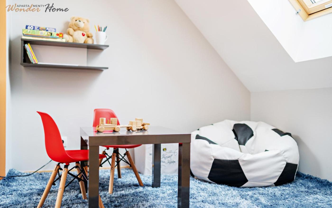 Apartament dwupoziomowy. This apartments standout feature is the fireplace. This spacious apartment is comprised of 2 living rooms, 2 separate bedrooms and 1 bathroom with a shower and free toiletries. Guests can make meals in the kitchenette that is fitted with a stovetop, a refrigerator, a dishwasher and kitchenware. This apartment features a private entrance, a tea and coffee maker, a flat-screen TV and a balcony. The unit offers 5 beds. Apartament - 6 osobowy. Powierzchnia pokoju ok.: 85 mkw.