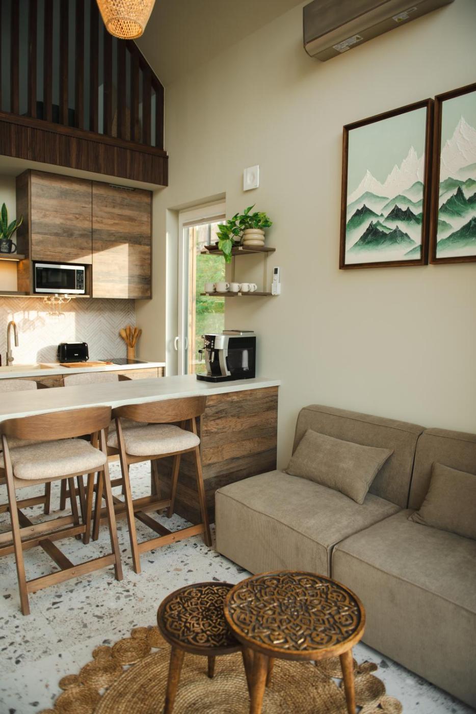 W obiekcie zapewniono część wypoczynkową z telewizorem z płaskim ekranem, aneks kuchenny z pełnym wyposażeniem, w tym lodówką i zmywarką, a także współdzieloną łazienkę z prysznicem oraz suszarką do włosów. Do dyspozycji Gości jest też taras, a z okien roztacza się widok na góry. Wyposażenie obejmuje również mikrofalówkę, płytę kuchenną, toster, ekspres do kawy i czajnik.