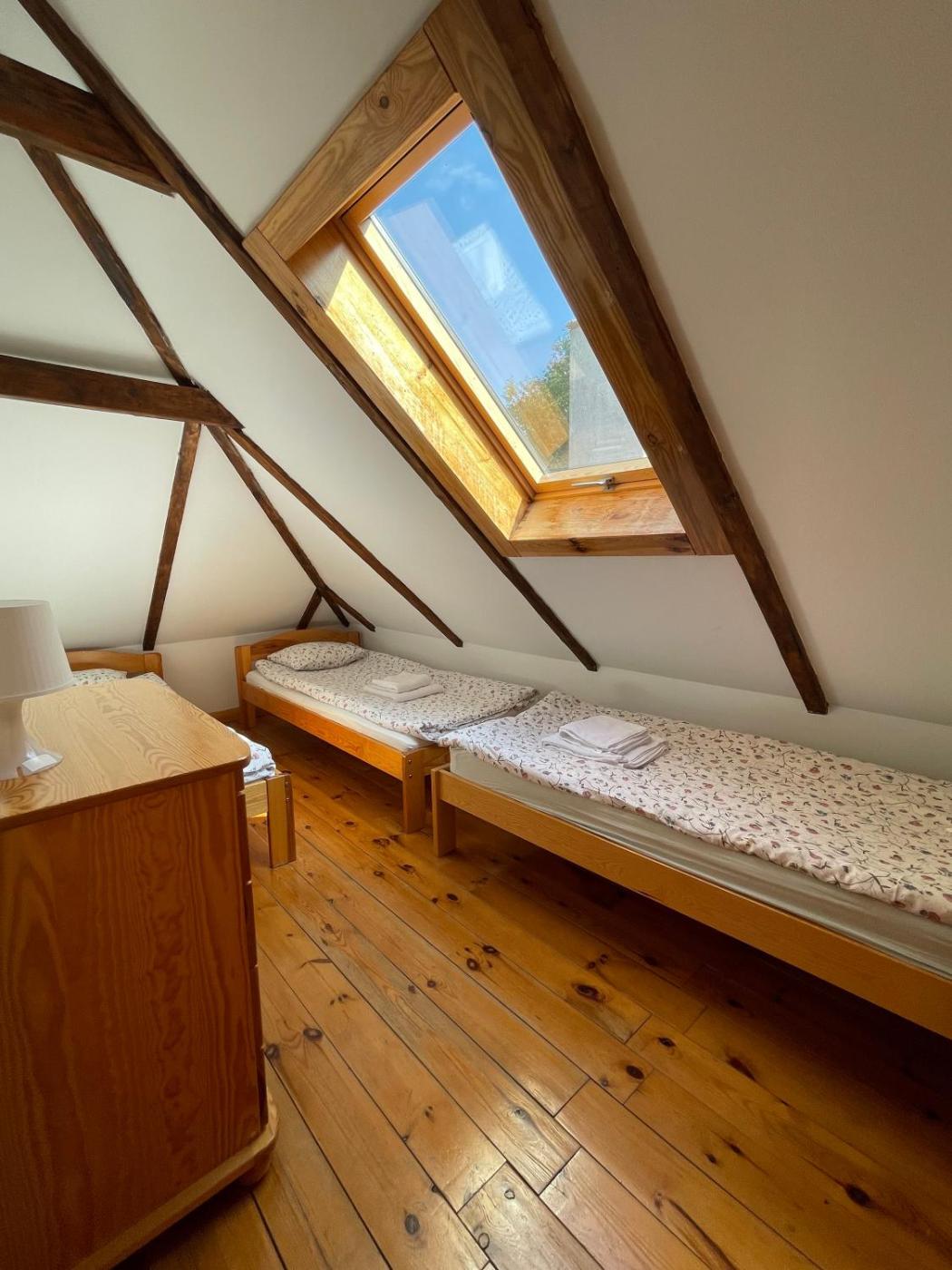 Dom z 3 sypialniami. Guests will have a special experience as this holiday home offers a sauna and a fireplace. Featuring a private entrance, this holiday home also is comprised of 1 living room, 3 separate bedrooms and 2 bathrooms with a shower. Guests will find a stovetop, a refrigerator, a dishwasher and kitchenware in the fully equipped kitchen. The holiday home also has a barbecue. The holiday home features parquet floors, a seating area with a flat-screen TV, a tea and coffee maker, a dining area as well as garden views. The unit offers 9 beds. Dom wakacyjny - 8 osobowy. Powierzchnia pokoju ok.: 80 mkw.