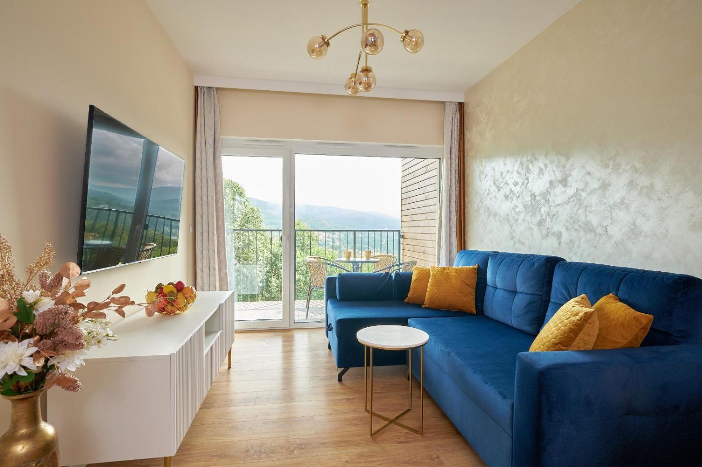 Apartament z widokiem na góry. Guests will have a special experience as the apartment offers a sauna. This apartment consists of 1 living room, 1 separate bedroom and 1 bathroom with a shower and free toiletries. The fully equipped kitchen features a stovetop, a refrigerator, a dishwasher and kitchenware. Featuring a balcony with mountain views, this apartment also provides a washing machine and a flat-screen TV with satellite channels. The unit offers 2 beds. Apartament - 4 osobowy. Powierzchnia pokoju ok.: 42 mkw.
