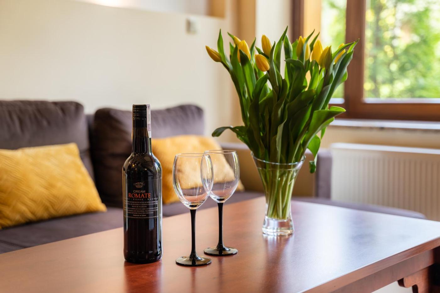 Apartament z 1 sypialnią. This apartment comprises 1 living room, 1 separate bedroom and 1 bathroom with a shower and free toiletries. Meals can be prepared in the kitchenette, which comes with a stovetop, a refrigerator, kitchenware and an oven. Featuring a terrace with garden views, this apartment also provides a seating area and a flat-screen TV. The unit offers 2 beds. Apartament - 4 osobowy. Powierzchnia pokoju ok.: 45 mkw.